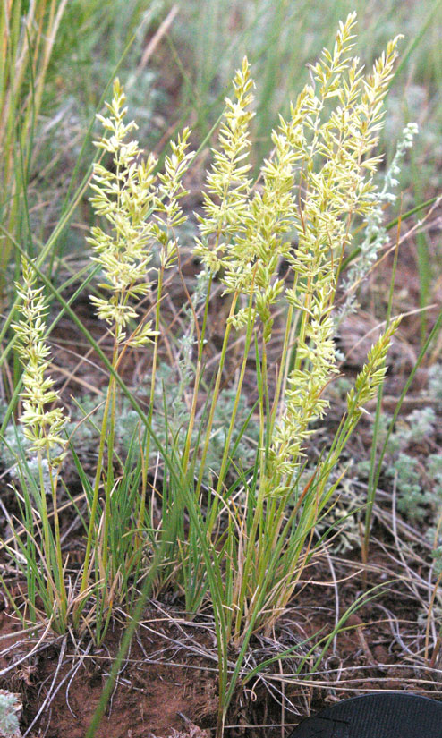 Junegrass (Koeleria macrantha), Grass Family (Poaceae). Native and common in meadows, shortgrass prairie, woodlands and sagebrush from plains to alpine on the east and west slopes. Blooms from May through August. Photo by Mo...