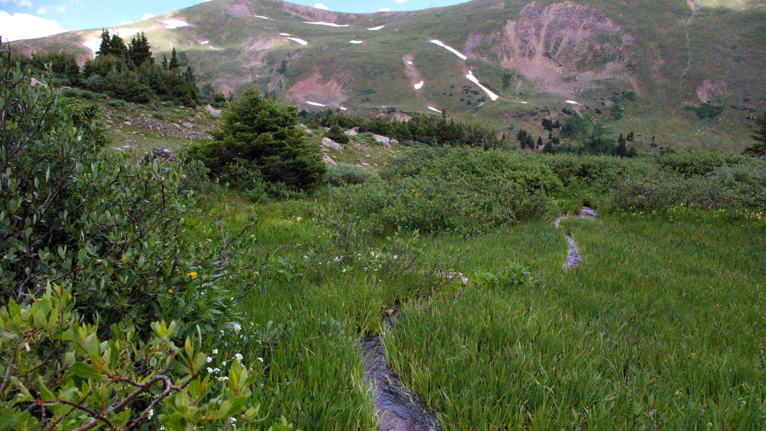 Horseshoe Cirque and alpine meadow, Mosquito Range, Park County. Photo by Mo Ewing. Horseshoe Cirque and alpine meadow, Mosquito Range, Park County. This is an extraordinarily perfect example of a cirque carved out by glaciers over millennia. The cirque faces...