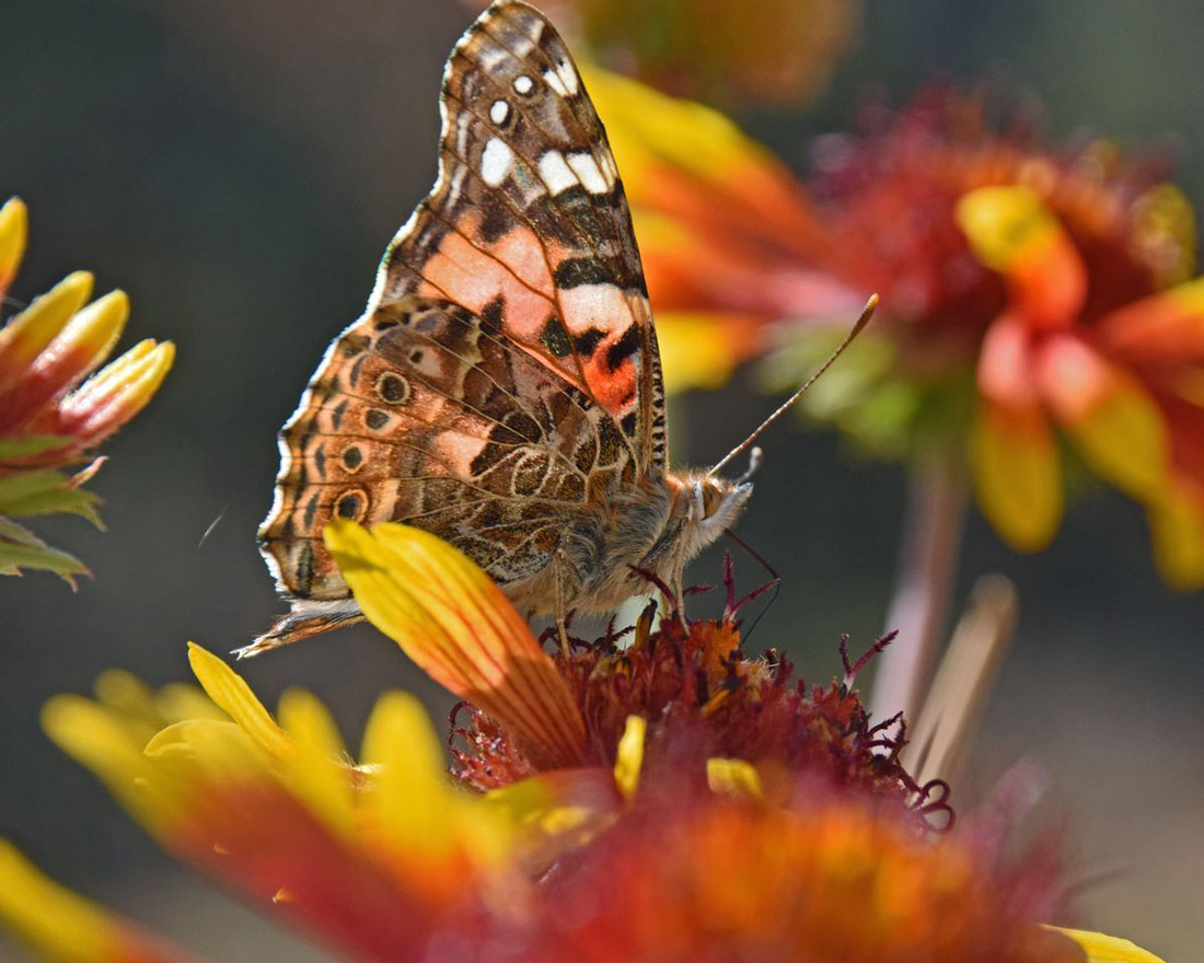 Painted lady butterfly nectaring on blanketflower. Photo by...