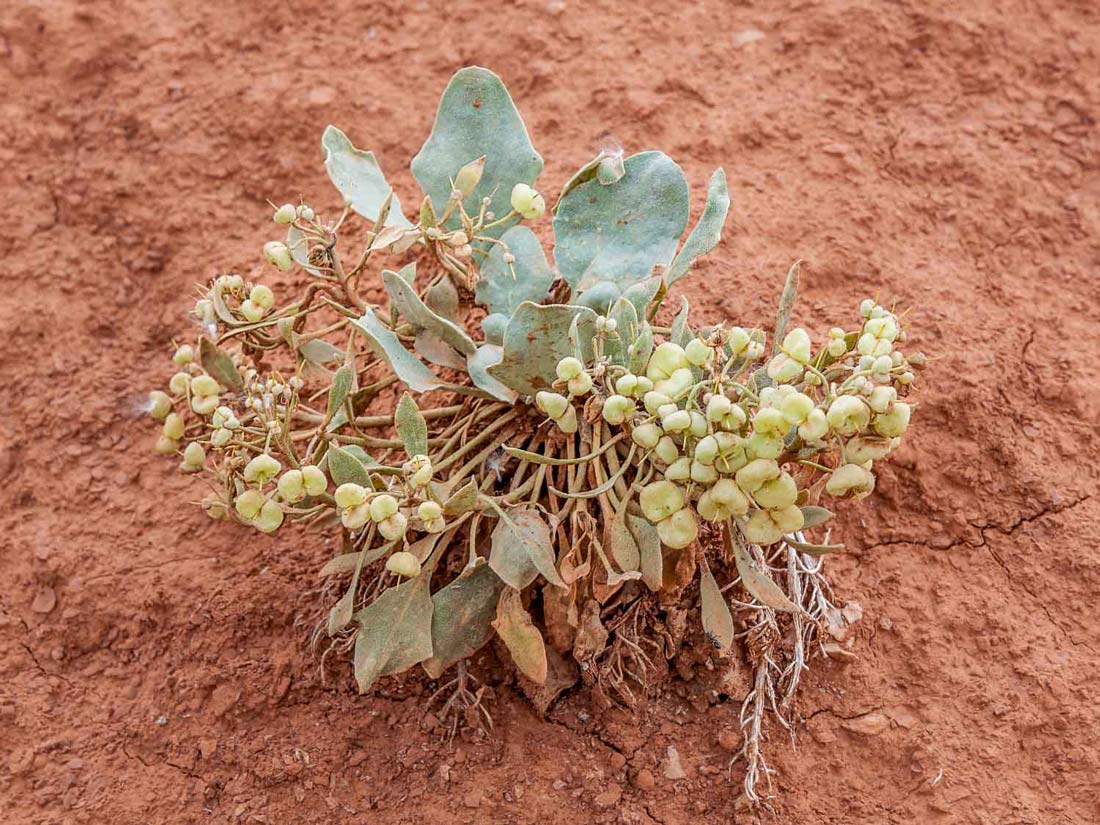 Roundleaf Bladderpod (Physaria ovalifolia), Mustard Family (Brassicaceae), native and found on limestone breaks and sandstone outcrops, in grasslands, and juniper woodlands, known from the southeastern Colorado counties on the plains. Blooms from April through May....